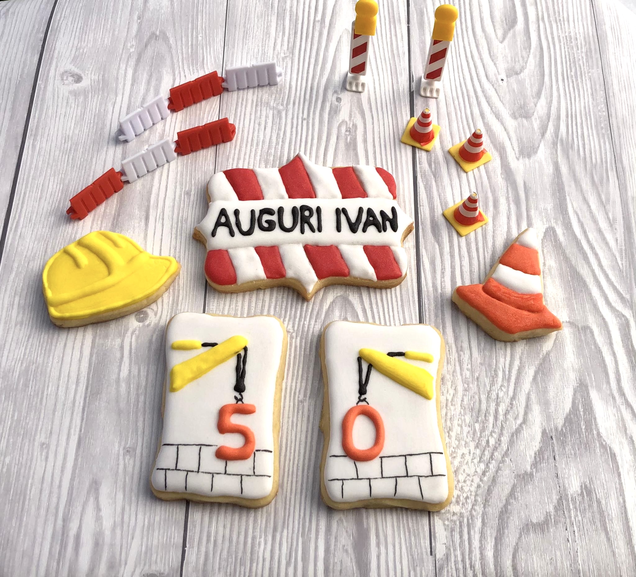 Ingredienti: Biscotto: burro, farina, uova, zucchero a velo, vaniglia Glassa: bianco d’uovo pastorizzato, zucchero a velo, limone, coloranti, alimentari