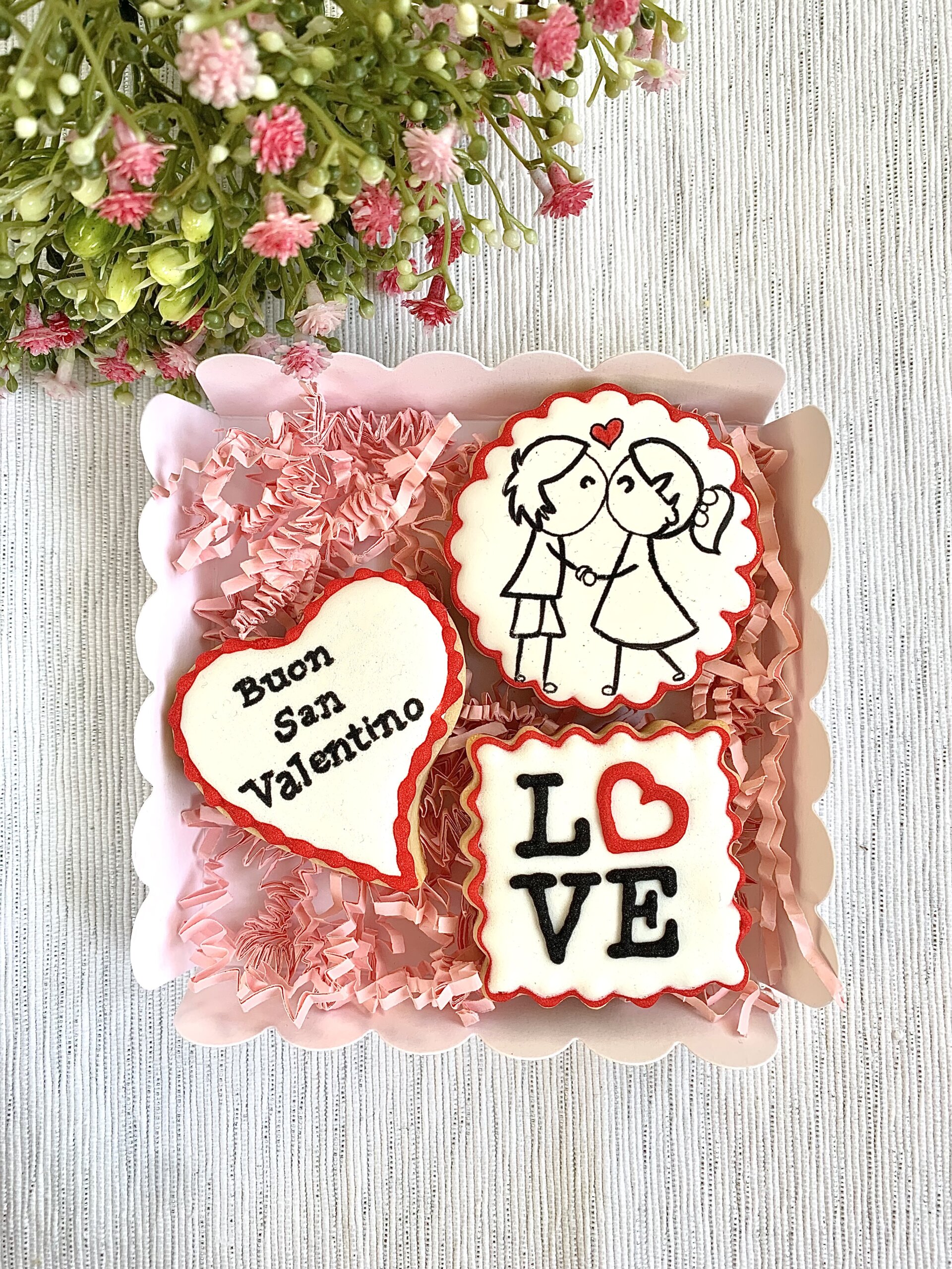 Contiene 3 biscotti di 6 cm l'uno Dimensione scatola 12x12 cm