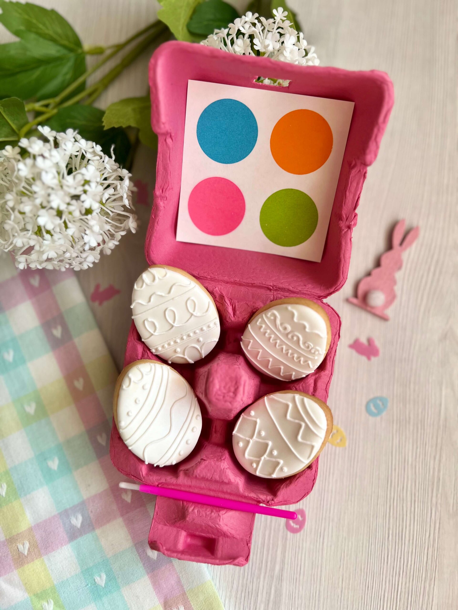 La confezione comprende 1 scatola con 4 biscotti da colorare 1 pennello e 1 tavolozza di colori
