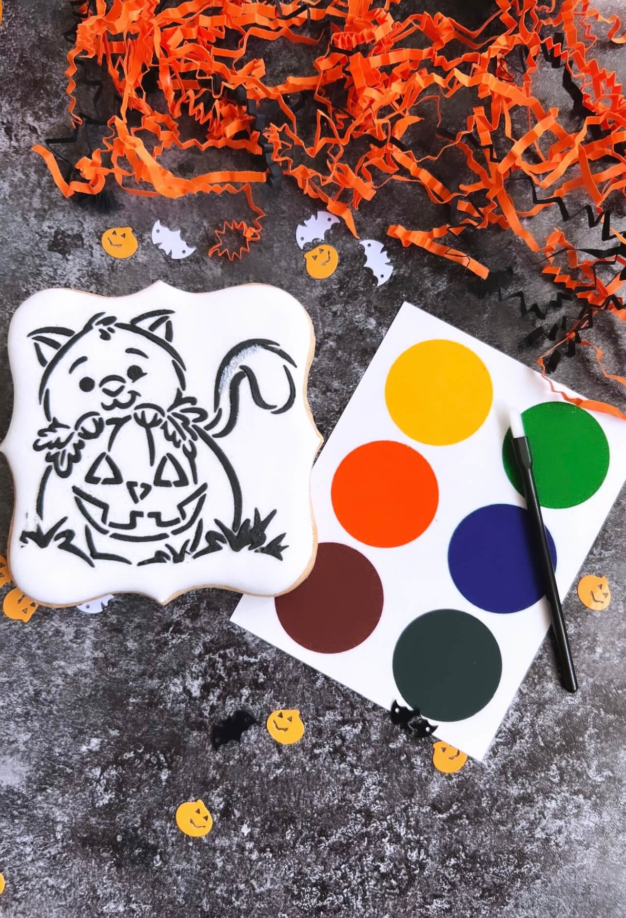 Biscotto decorato con glassa. La confezione comprende 1 BISCOTTO, 1pennello e 1 tavolozza di colori Bagnare il pennello con un po’ d’acqua. Pitturare il biscotto grazie ai colori commestibili della tavolozza. Lasciar asciugare il biscotto per un’ora e poi mangiarlo.