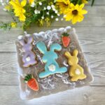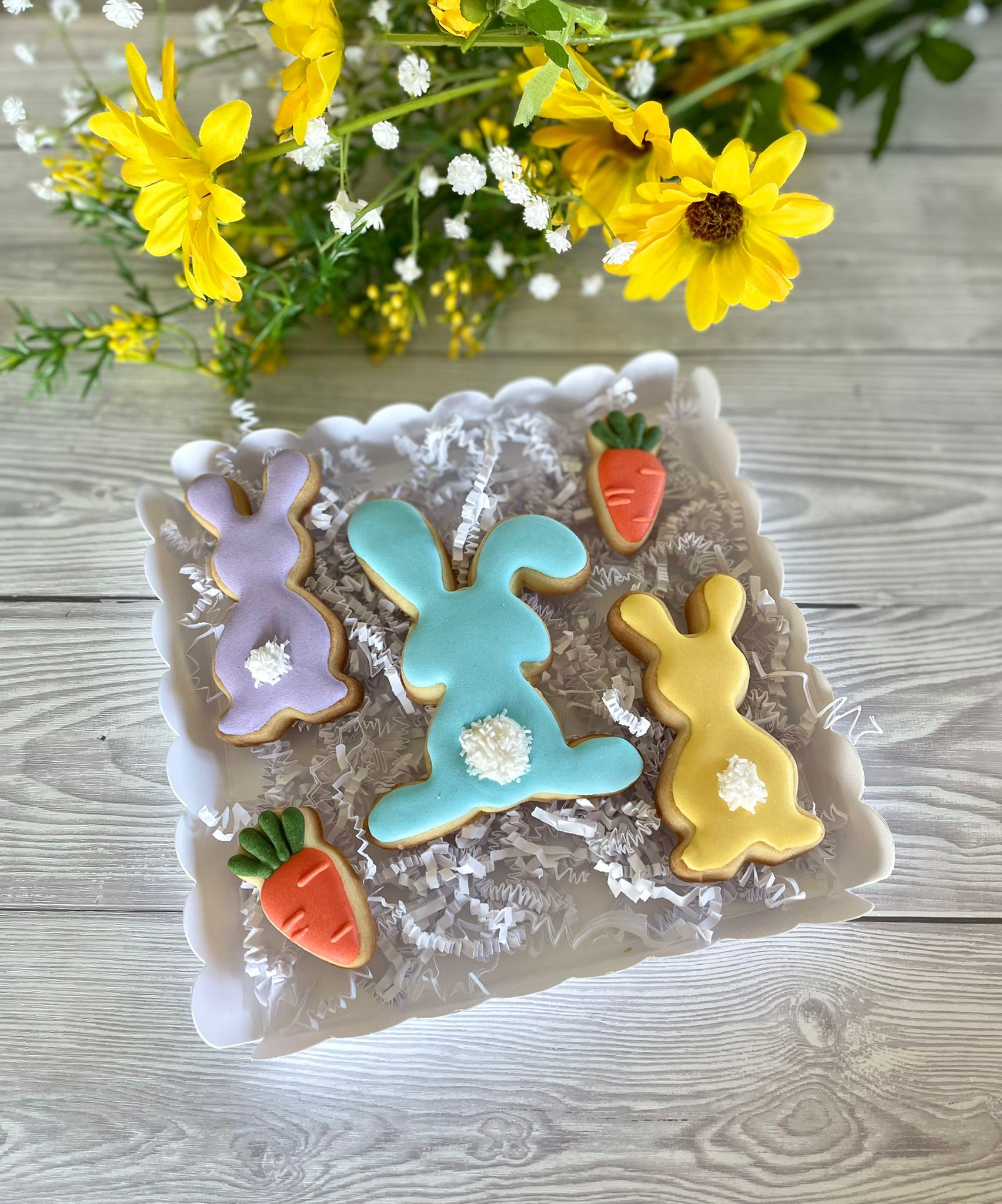BISCOTTI AL BURRO Ingredienti: biscotto (FARINA bianca, BURRO 25%, zucchero a velo, UOVA, pasta di vaniglia, sale, scorza limone) glassa (zucchero a velo, bianco d’UOVO pastorizzato, succo di limone, coloranti E102, E110, E122, E133)